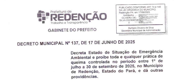 Redenção, no sul do Pará, receberá R$ 90.506,00. O município enfrenta um cenário de estiagem agravado por queimadas e incêndios florestais, que motivaram sucessivos decretos de situação de emergência em 2025. Entre as medidas adotadas, estão a proibição de queimas controladas, a execução do Plano de Contingência contra incêndios florestais e ações integradas da Operação Fênix, com capacitação de agentes locais e campanhas de conscientização da população.