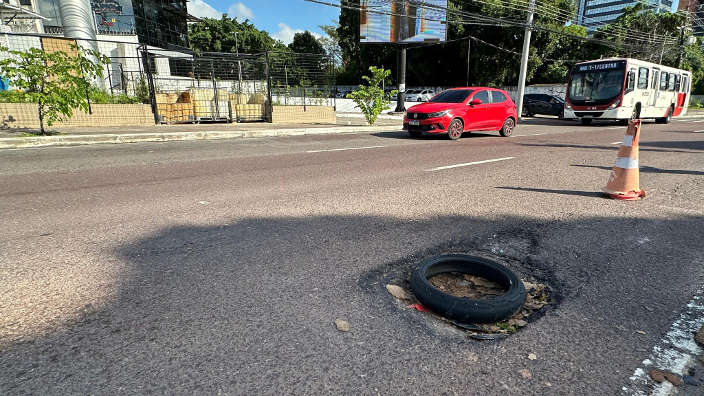 Após o acidente registrado durante o início da noite desse domingo, um pneu e um cone de sinalização foram colocados antes do buraco para alertar os motoristas que trafegam na Avenida Djalma Batista. Não há informações de quem teria colocado a sinalização no local.