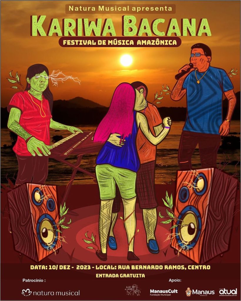 “Um festival para descolonizar ouvidos, romper hegemonias sonoras e compartilhar acordes ancestrais“, define a organização do evento, pelas redes sociais. “Música e dança conectam cosmologias ancestrais e vivências urbanas de artistas da Amazônia na estreia do Festival Kariwa Bacana, uma convergência de vozes indígenas e indie no Centro de Manaus“.