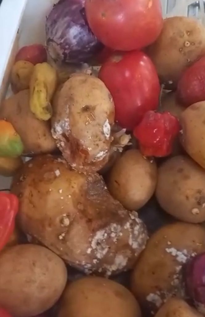 Além disso, as verduras que também que aparecem em outro registro aparentam aspectos de vencidas e em más condições. “Só pra ficar registrado aqui a qualidade da comida de hoje, só tem osso, pouca verdura“, declarou a denunciante.