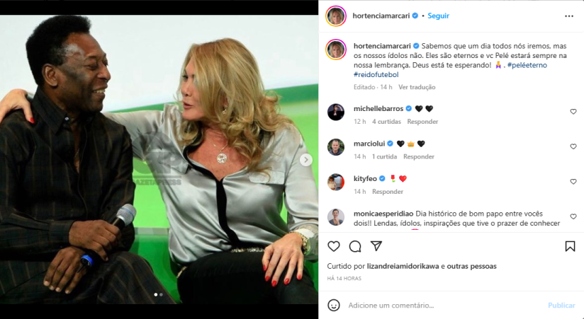 Já Hortência Marcari, um dos expoentes do basquete brasileiro, destacou o fato de que o legado de Pelé perdurará pela eternidade: “Sabemos que um dia todos nós iremos, mas os nossos ídolos não. Eles são eternos e você Pelé estará sempre na nossa lembrança. Deus está te esperando”.