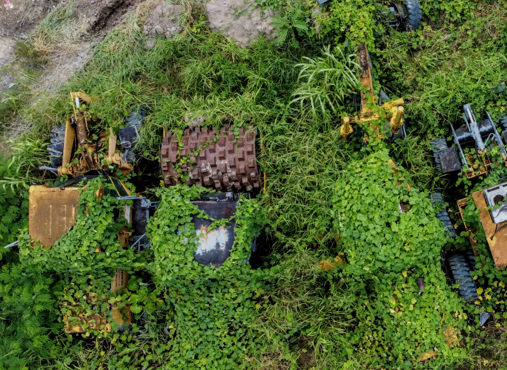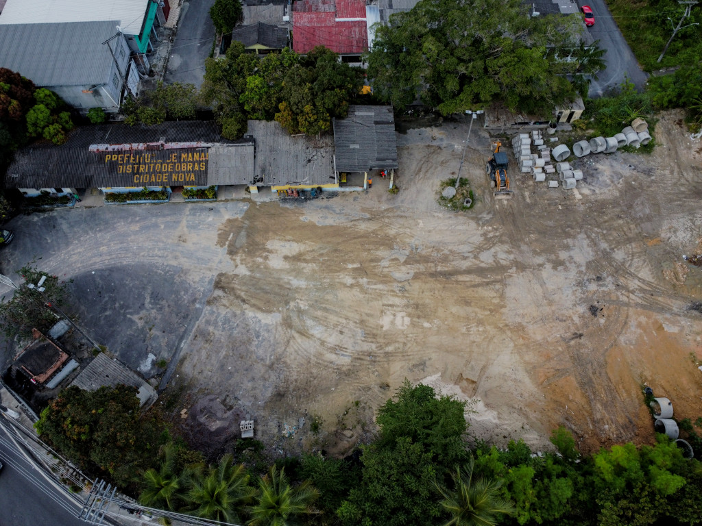 No bairro Cidade de Deus, na Zona Norte de Manaus, maquinários estão cobertos por vegetação e enferrujados, o que indica que estão parados no local há pelo menos um ano. O tempo de abandono foi confirmado pelos moradores.