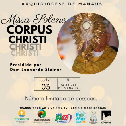 MANAUS – A Igreja Católica celebra hoje, 3, em todo o mundo, a Solenidade de Corpus Christi, o Corpo de Cristo. Devido à pandemia da Covid – 19, não será possível realizar a tradicional procissão com Jesus Eucarístico pelas ruas do centro da capital amazonense.