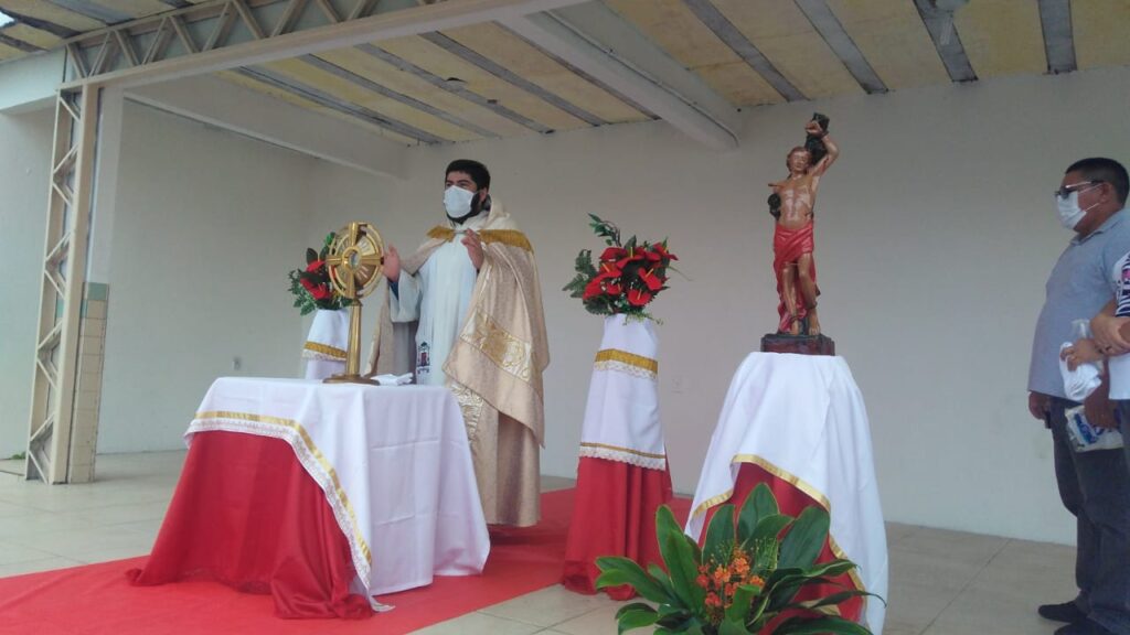 Para não aglomerar, algumas igrejas estão promovendo carreatas isoladas com a exposição do Santíssimo Sacramento, em cima do carro, como é o caso da comunidade São Sebastião, localizada no bairro Petrópolis, zona sul de Manaus, pertencente à Área Missionária Santa Catarina de Sena.