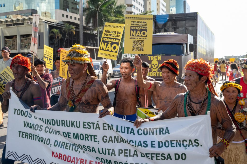 “A Ferrogrão é para carregar uma quantidade enorme de soja. Empresas internacionais como Cargill e Bung estão por trás desse projeto, financiadas por bancos mundiais. Para eles, a nossa vida não vale nada”, afirmou Korap.