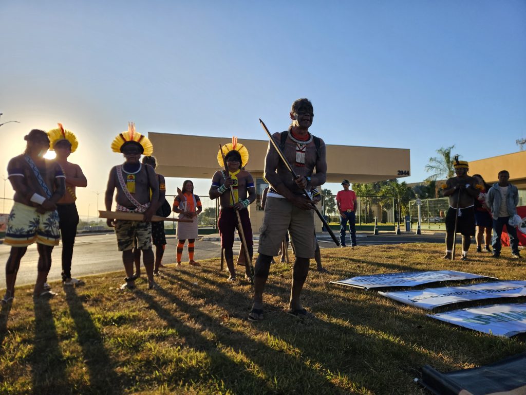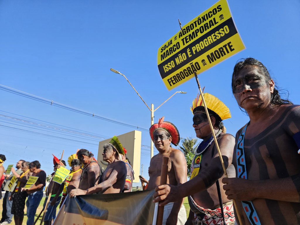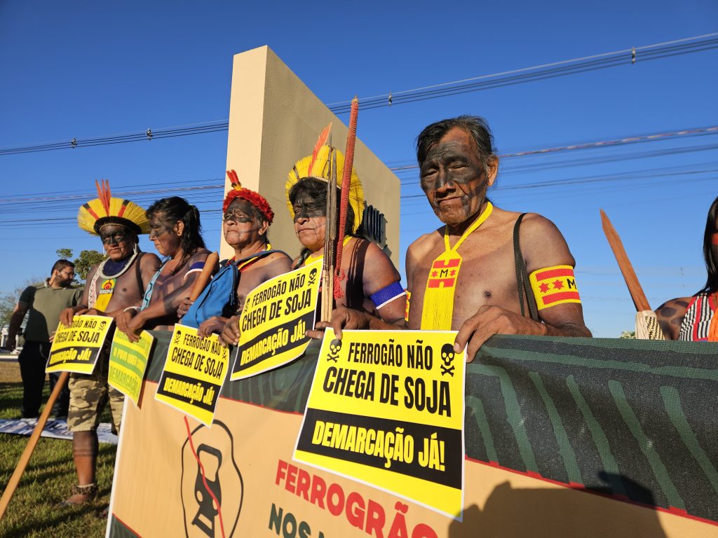 O protesto é uma iniciativa da Aliança #FerrogrãoNão, que reúne mais de 30 organizações indígenas, movimentos sociais e entidades socioambientais em defesa dos territórios, povos e comunidades da Amazônia e do Cerrado.