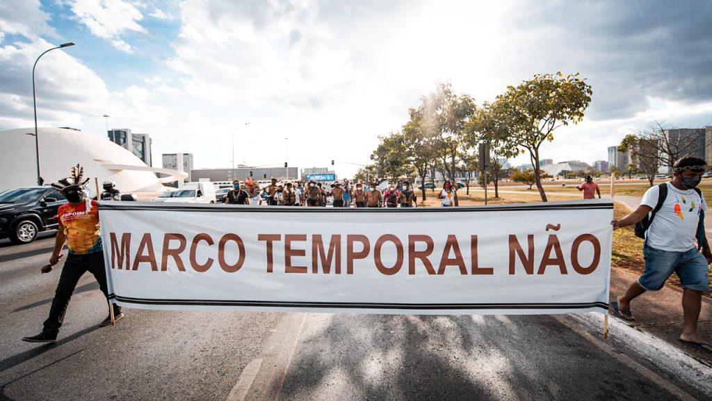 No Supremo Tribunal Federal (STF), um tema com amplo debate tem sido a possibilidade de aprovação do “Marco Temporal”, que envolve os povos Xokleng, Kaingang e Guarani da TI Xokleng La Klaño, no Estado de Santa Catarina. O Recurso Extraordinário (RE) n.º 1.017.365 procura estabelecer se os indígenas somente teriam direito as suas terras se as tivessem em sua posse física em 5 de outubro de 1988, data da promulgação da Constituição.