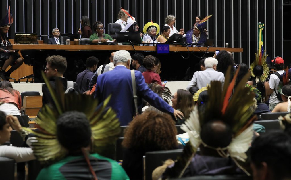 Durante a sessão da Câmara, um dos coordenadores executivos da Apib convidados a discursar, Dinamam Tuxá, criticou iniciativas parlamentares que afrontam os direitos indígenas. A seu ver, as proposições desfiguram o texto constitucional, com propostas como o chamado Marco Temporal – tese jurídica segundo a qual os indígenas só teriam direito às terras que ocupavam em outubro de 1988, quando a Constituição Federal foi promulgada.