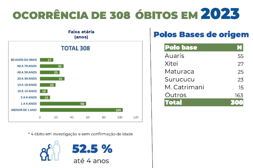 Entre as mortes registradas entre janeiro e novembro do ano passado, 175 são de crianças entre zero e nove anos. 104 são de bebês com menos de um ano. A maioria dos óbitos foram causados por doenças respiratórias como a gripe e pneumonia, doenças infecciosas e parasitárias, endócrinas, nutricionais e metabólicas. Além das causas externas de morbidade e mortalidade.