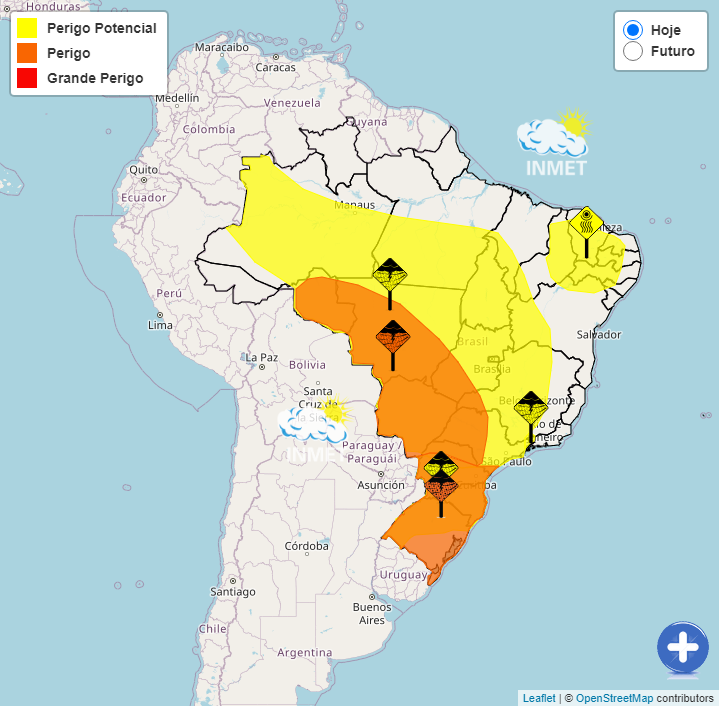 Ainda de acordo com o Inmet, o período de chuvas intensas deve durar 24 horas, entre 10h desta quarta e 10h dessa quinta-feira, 7. Outros Estados também estão receberam alerta de chuvas intensas: Pará, Mato Grosso, Tocantins, Goiás, Minas Gerais, São Paulo, Bahia, entre outros.