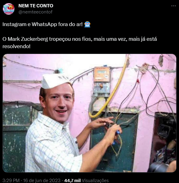 A oscilação das redes sociais, que ocupam as primeiras posições do ranking das mais usadas no País, ficou entre os assuntos mais comentados do Twitter. Um usuário brincou que o presidente da Meta, Mark Mark Zuckerberg, seria o responsável pela pane.