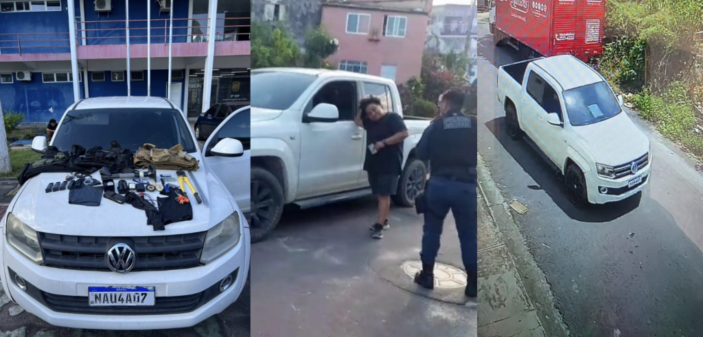 Com base nas informações da vítima e no levantamento do veículo utilizado no crime, uma caminhonete VW Amarok branca, a Polícia Militar abordou o automóvel no dia 19 do mês passado.
