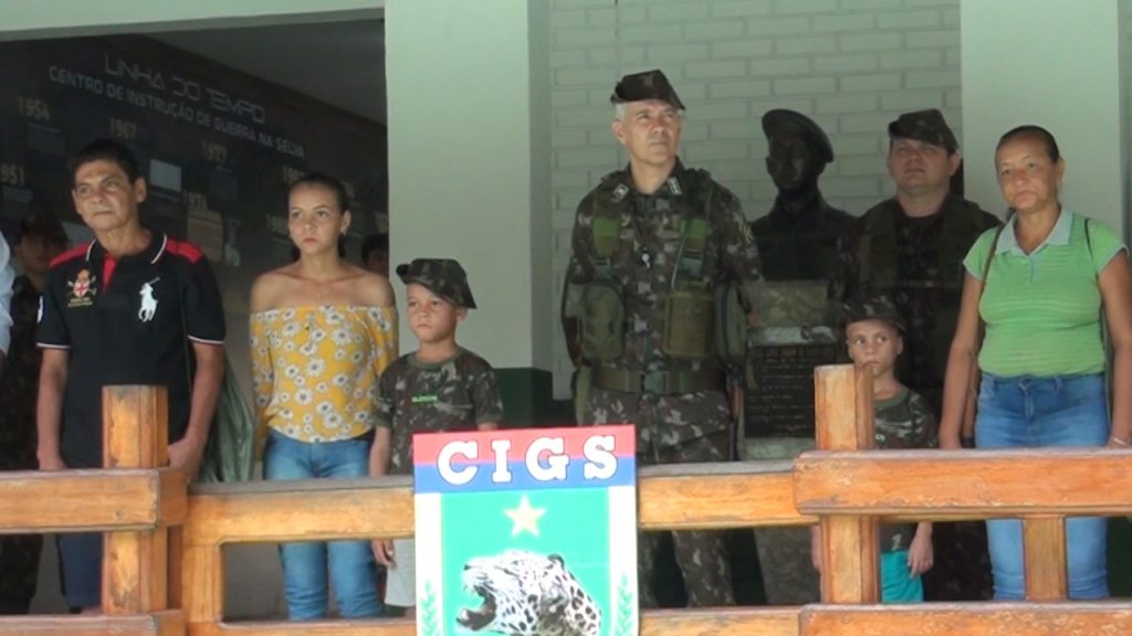 Na solenidade no Cigs, realizada pelo Comando Militar da Amazônia (CMA), os dois pequenos receberam o distintivo do Estágio de Adaptação à Selva, uma faixa semicircular com as inscrições “SELVA”, e chapéu bandeirante com o distintivo do centro de instrução. O coronel Fábio Pinheiro Lustosa, comandante do CMA, falou sobre o reconhecimento das características inerentes aos guerreiros da selva, as quais os meninos apresentaram.