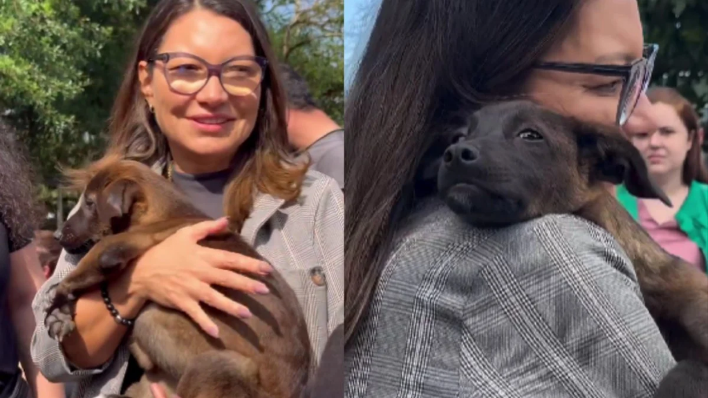 No vídeo publicado em suas redes, Janja aparece abraçada ao animal. Ao final, Lula também é visto com a cachorrinha no colo, em um assento de avião. A primeira-dama e o presidente já têm dois cachorros, ambos adotados.