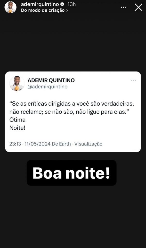 O dono da conta @cnls pediu para Ademir Quintino reconhecer o erro e pedir desculpas. “Você foi preconceituoso e desrespeitoso. Não diga que é a intenção do programa. Admita que errou e siga o baile”, afirmou.