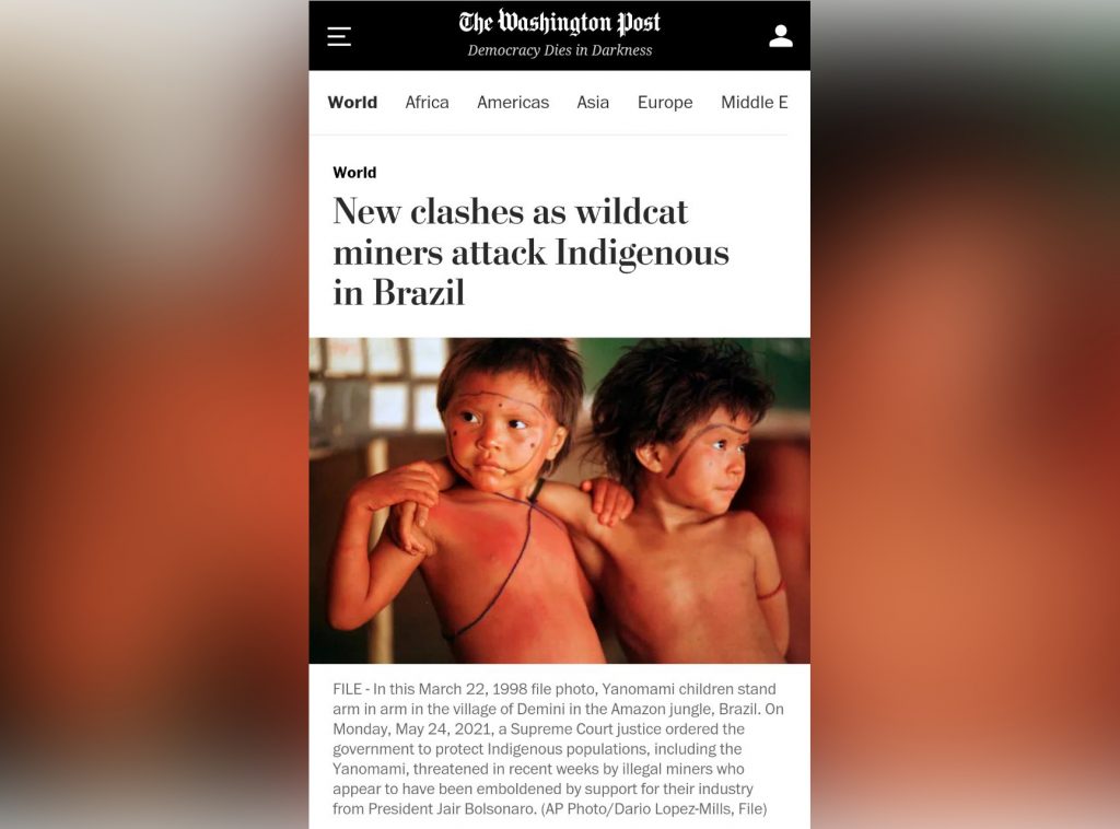 Jornal ‘The Washington Post’ repercute ataques dos garimpeiros contra as comunidades indígenas no Brasil