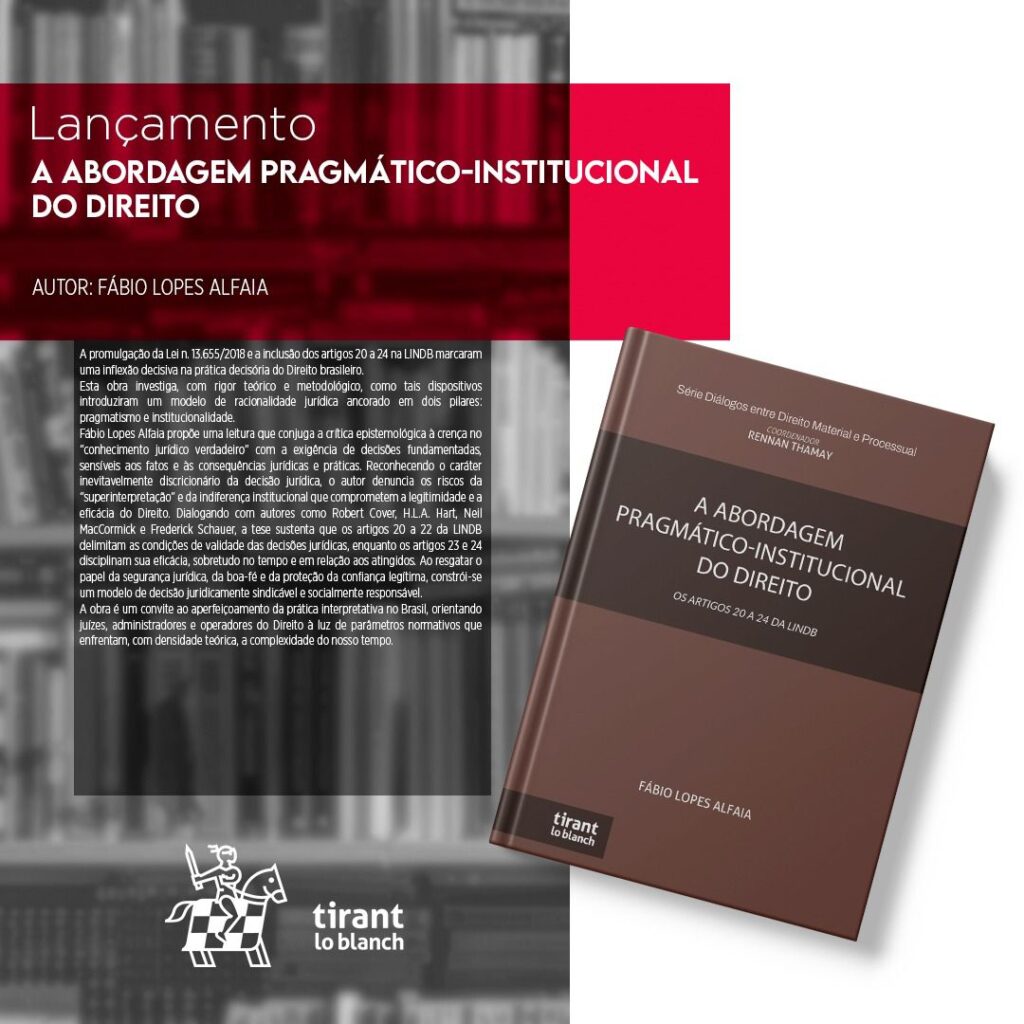 O livro “A Abordagem Pragmático-Institucional do Direito” está disponível para compra no site da Editora Tirant, uma das casas editoriais jurídicas mais prestigiadas do mundo, no valor de R$ 140,00.