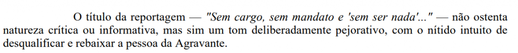 Segundo a desembargadora, o conteúdo “não ostenta natureza crítica ou informativa, mas sim um tom deliberadamente pejorativo, com o nítido intuito de desqualificar e rebaixar a pessoa da agravante“.