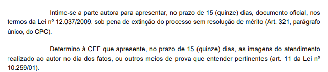 Durante o processo, o juiz Erico Rodrigo Freitas Pinheiro chegou a pedir, em 31 de maio, as imagens de câmeras de segurança do circuito interno da agência da CEF, que mostravam o “atendimento realizado ao autor no dia dos fatos, ou outros meios de prova que entender pertinentes”. O prazo dado pela Justiça do Amazonas foi de 15 dias. Veja trecho da decisão: