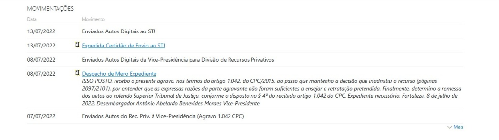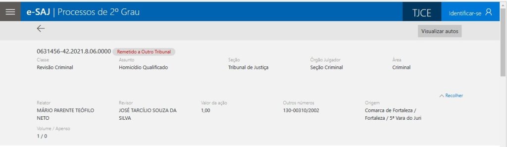 Em 2021, a defesa do empresário pediu revisão criminal do processo por homicídio qualificado junto ao Ministério Público do Ceará, que manteve a decisão “por entender que as expressas razões da parte agravante não foram suficientes a ensejar a retratação pretendida. Finalmente, determino a remessa dos autos ao colendo Superior Tribunal de Justiça, conforme o disposto no § 4° do recitado artigo 1.042 do CPC. Expediente necessário. Fortaleza, 8 de julho de 2022. Desembargador Antônio Abelardo Benevides Moraes, vice-presidente“.