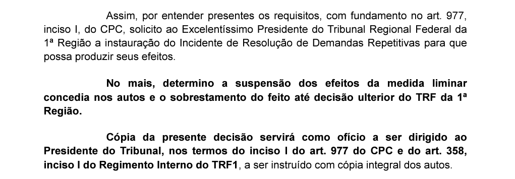 Em outro trecho, o juiz apontou que Camargos Ferreira entrou com diversas ações no território nacional, e que o pedido acatado pelo juízo considerou a bonificação estadual constitucional. Além disso, o Ministério Público Federal (MPF) entendeu a inexistência de lesão ao patrimônio público e à moralidade administrativa, assim como considerou legal e constitucional a bonificação regional.