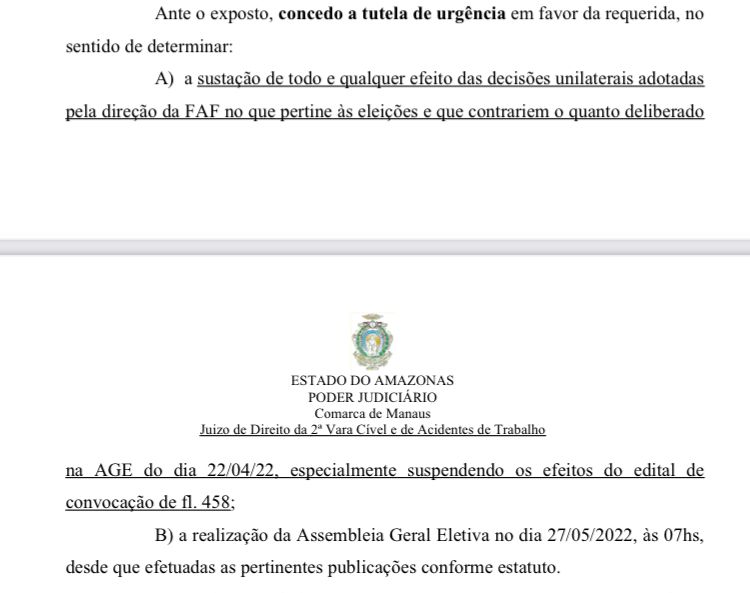 MANAUS — O juiz de Direito Roberto Santos Taketomi, da 2ª Vara Cível e de Acidentes de Trabalho, foi contra a data das eleições que definirão a nova diretoria da Federação Amazonense de Futebol (FAF), marcada para o dia 23 de setembro de 2022 pelo presidente em exercício da entidade, Pedro Augusto. Em decisão interlocutória, o magistrado chamou de descabida e unilateral a convocação da diretoria atual, suspendendo o ato, e determinou que a votação seja realizada no dia 27 deste mês.