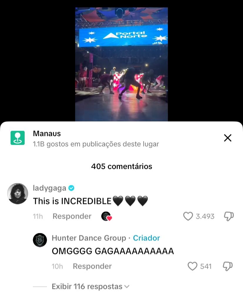 A cantora pop norte-americana Lady Gaga, famosa por hits como “Bad Romance” e “Just Dance“, surpreendeu os fãs amazonenses ao republicar, na rede social TikTok, um vídeo do grupo de dança de Manaus Hunter Group, performando a música “Abracadabra“, lançada recentemente pela artista. Lady Gaga também comentou a apresentação.