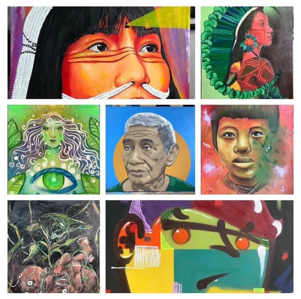 Além do muralista e grafiteiro Alessandro Hipz, com obra inspirada em uma indígena originária do Norte do Amazonas do território do Vale do Javari, o leilão traz trabalhos em telas de artistas como o manauara Adonay Garcia, que teve como inspiração o seu João, o próprio pai com traços legítimos de um amazônida.