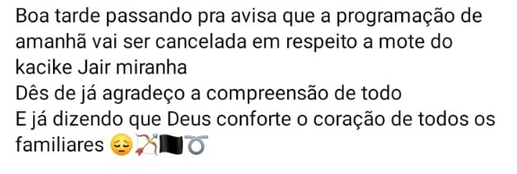 Organizada pelo cacique, a 1ª Feira de Artesanato Indígena da comunidade Novo Horizonte Distrito 2, marcada para acontecer no domingo, 9, foi cancelada devido à morte do líder.