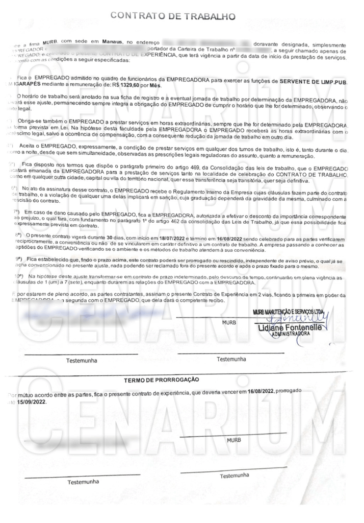 Como mostrou a reportagem, os documentos que indicam a realação de Lidiane Fontenelle com a empresa Murb Manutenção e Serviços Urbanos Ltda., atualmente alvo de ação do Ministério Público de Contas do Amazonas (MPC-AM), incluem um contrato de trabalho em nome dela, firmado entre julho de 2022 e setembro de 2023, período em que foi contratada para substituir um funcionário demitido.