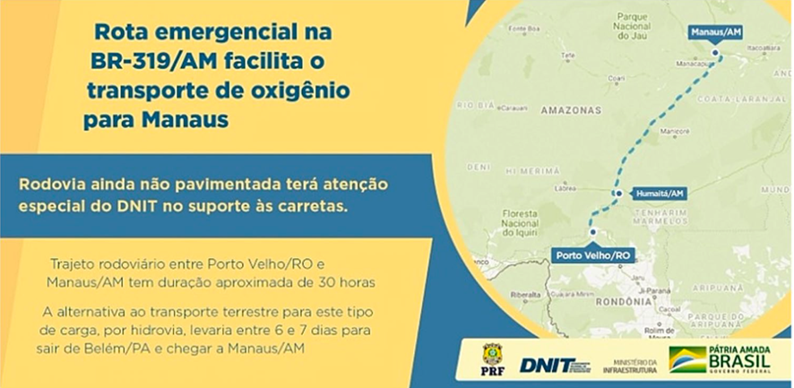 O estudo torna claro, tanto a responsabilidade como a culpabilidade da tragédia da falta de oxigênio, no ápice da segunda onda de COVID-19 em Manaus, dos ex-ministros Eduardo Pazuello e o ex-ministro e hoje governador do estado de São Paulo, Tarcísio de Freitas para promover um lobby da repavimentação da rodovia BR-319, que foi uma das promessas de campanha do ex-presidente Jair Bolsonaro. O estudo apontou que o Ministério de Infraestrutura, comandado por Tarcísio de Freitas, anunciou que faria uma rota emergencial para atender a demanda de oxigênio a Manaus. Segundo o card do próprio Ministério e do DNIT (órgão responsável pela pavimentação da rodovia), a melhor rota, supostamente, seria pela rodovia BR-319 e a rota alternativa seria saindo de Belém, no estado do Pará, transportando o oxigênio no contra fluxo do rio Amazonas.