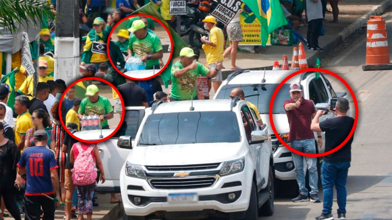 Ao chegarem ao local, a repórter Ívina Garcia e o fotojornalista Ricardo Oliveira registraram a entrega de doações realizadas por pessoas a bordo de um carro modelo Chevrolet S10 que abastecia os manifestantes com água e refrigerante.