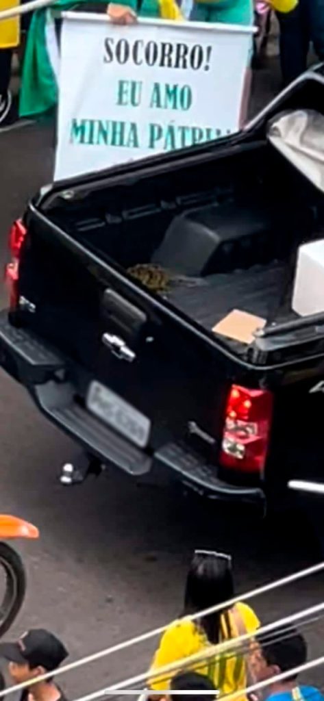 Um veículo registrado em nome da empresa Portal Vidros também foi flagrado descarregando mantimentos na manifestação antidemocrática no Comando Militar da Amazônia. Registrada nos nomes dos sócios Tulhio Moreira Israel e Luiz Israel da Silva, a caminhonete preta foi vista realizando doações por moradores que enviaram a foto à reportagem.