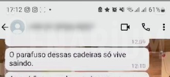 Em um outro trecho da conversa, o funcionário da unidade de ensino também relata que os parafusos das cadeiras “vivendo saindo”.