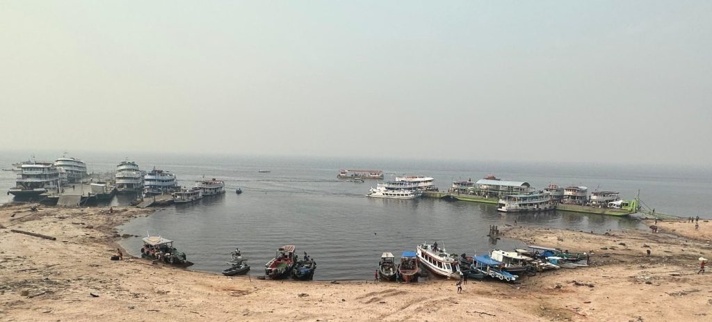 MANAUS (AM) – Do alto da Avenida Ernesto Costa, no bairro Colônia Antônio Aleixo, Zona Leste de Manaus, a união entre o barroso Rio Solimões e o escuro Rio Negro se destaca no horizonte. Acostumados a ter o Encontro das Águas como paisagem diária, os moradores agora dividem a vista com o cenário devastador daquela que já é considerada a maior seca do Amazonas dos últimos dez anos, segundo medições do Porto de Manaus.
