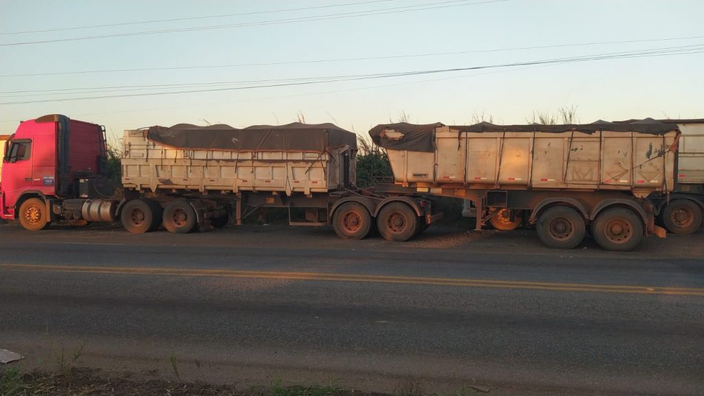 O motorista do veículo apresentou aos agentes uma documentação declarando o transporte de “pó de brita”, entretanto com a vistoria da carga foi possível identificar que havia, na verdade, de minério, possivelmente manganês.