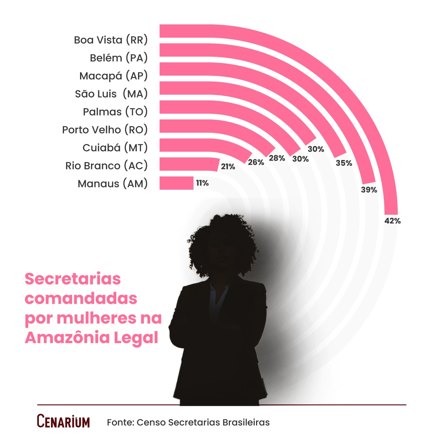 De acordo com os dados, a capital amazonense está abaixo da média nacional (28%), em comparação as outras capitais do País, com 11% de mulheres secretárias de alguma pasta municipal, ficando à frente apenas da capital do Piauí, Teresina (6%). Em comparação a capitais de Estados que compõem a Amazônia Legal, Manaus tem o menor número de mulheres em cargos de primeiro escalão.