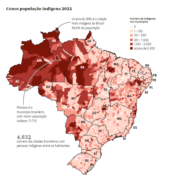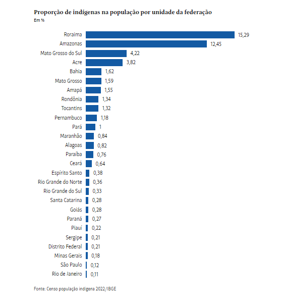 No total, 12,45% da população do estado se identifica como indígena. Só Roraima, com 15,29%, tem uma proporção maior.