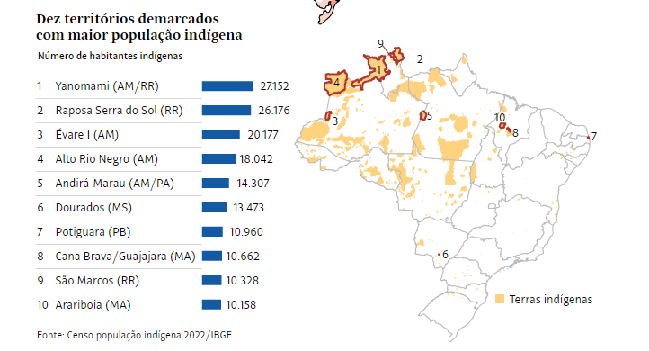 Amaturá e São Paulo de Olivença, ambos no Amazonas, também aparecem entre os municípios que têm mais de 80% da população formada por indígena.