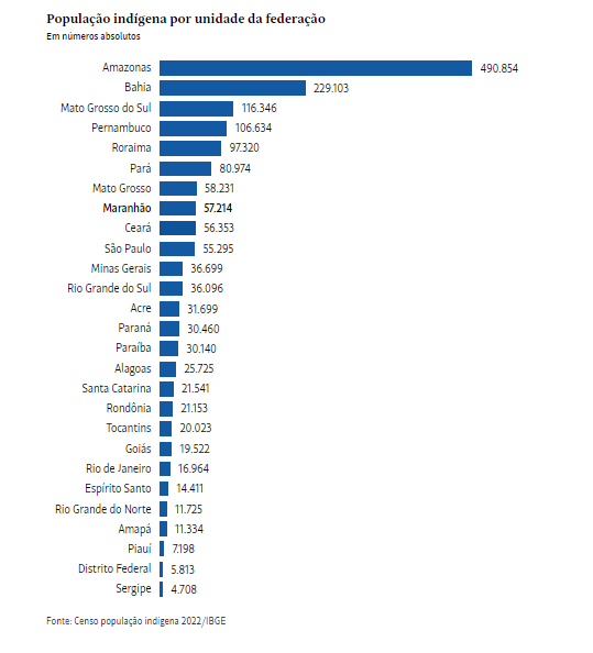 Em números absolutos, o Amazonas tem a maior população indígena entre as unidades federativas do Brasil, com 490.854 pessoas. Isso significa que de cada 10 indígenas brasileiros, três vivem no Estado.