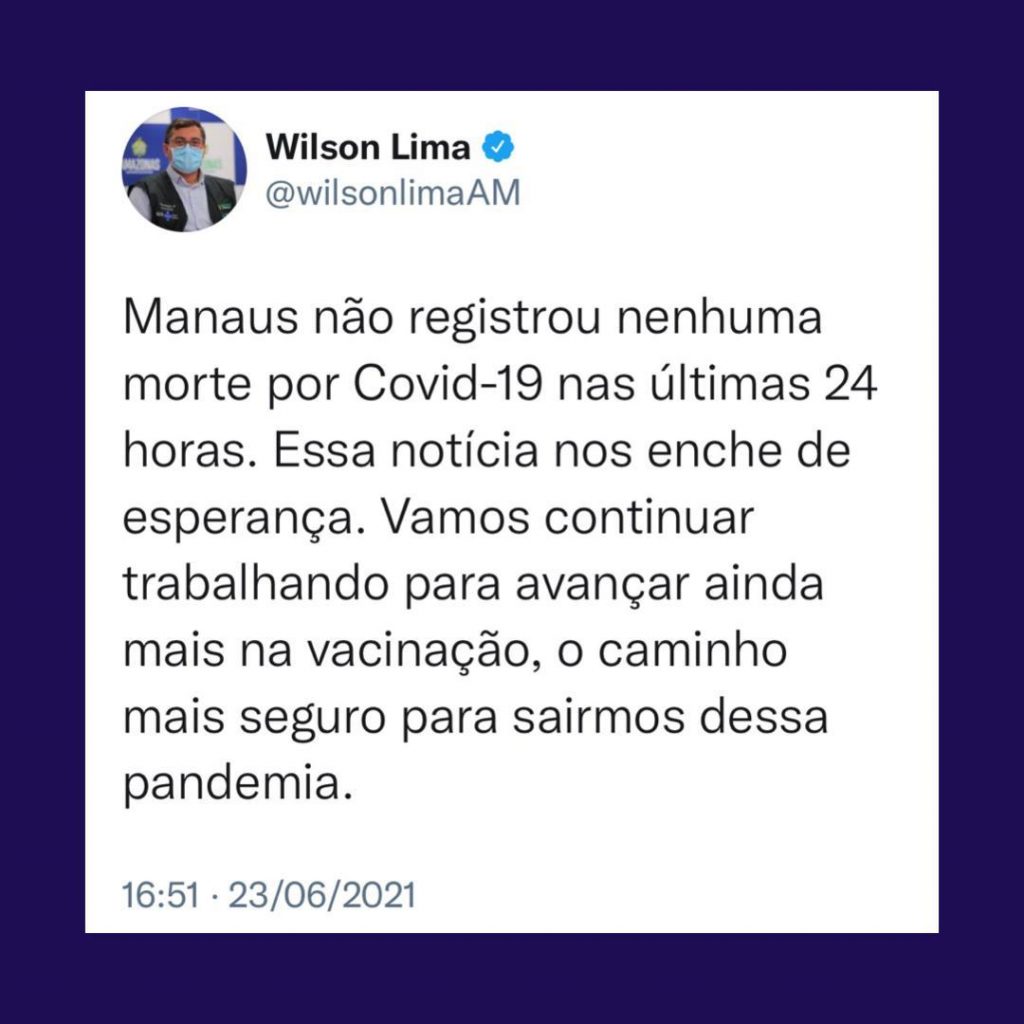 “Manaus não registrou nenhuma morte por Covid-19 nas últimas 24 horas. Essa notícia nos enche de esperança. Vamos continuar trabalhando para avançar ainda mais na vacinação, o caminho mais seguro para sairmos dessa pandemia”, disse o governador.