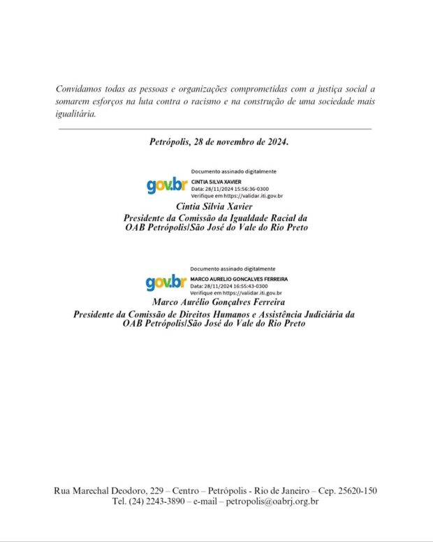 Além da OAB-RJ, o Conselho Municipal de Promoção da Igualdade Racial de Petrópolis (Compir) se manifestou contra a marca após o recebimento de denúncias. Na terça-feira, 26, o órgão emitiu uma nota de repúdio na qual afirma que “tal representação simbólica é inaceitável e configura um ato de racismo, ferindo os princípios fundamentais de dignidade, igualdade e respeito que regem a nossa sociedade”.
