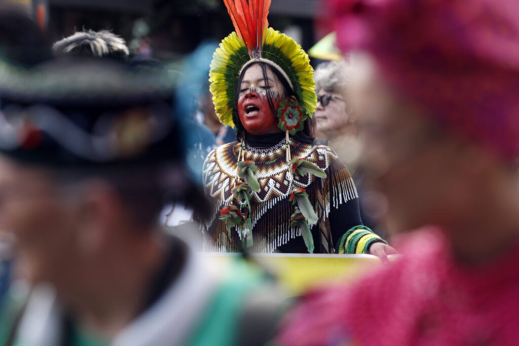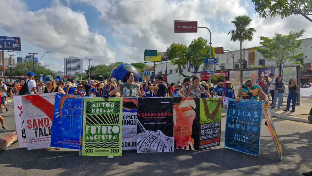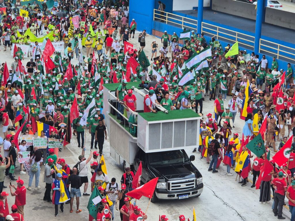 Com o tema “Lutar e Resistir contra os Predadores da Vida Disfarçados de Progresso“, a manifestação reforçou as principais reivindicações do Sul Global: transição justa, desmatamento zero, combate ao racismo ambiental e participação efetiva dos povos tradicionais nas decisões climáticas.