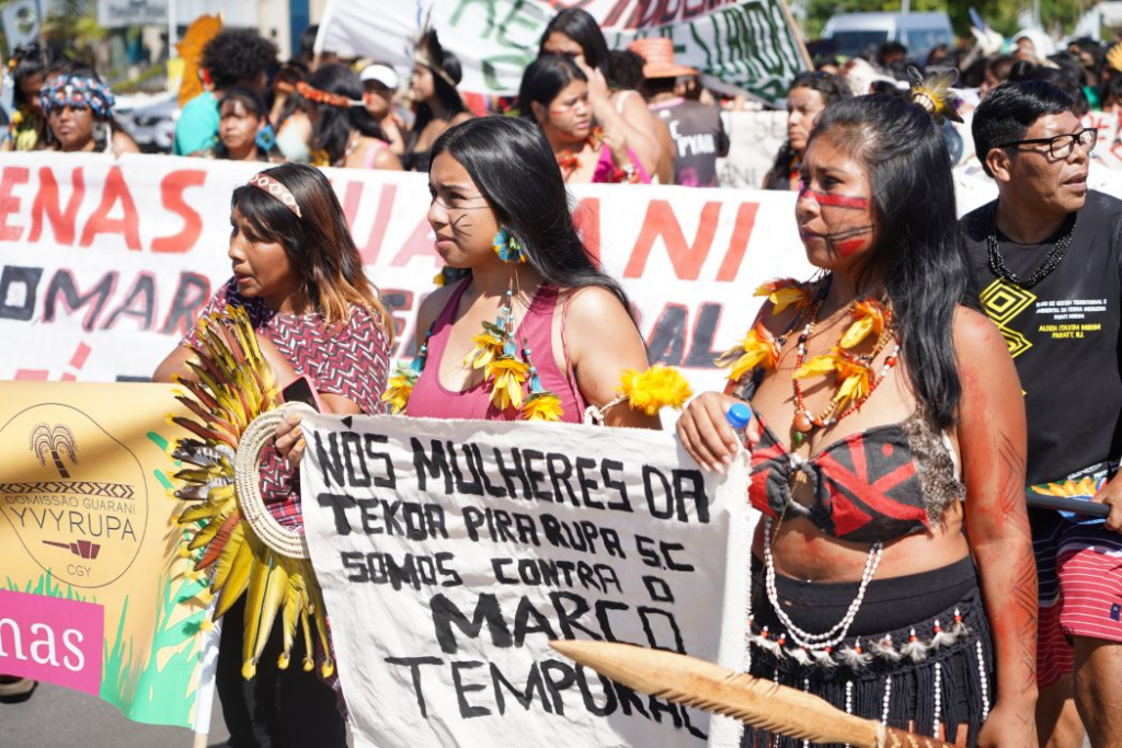 Na análise da organização indigenista, o marco temporal viola ainda a convenção do Comitê das Nações Unidas sobre a eliminação de todas as formas de discriminação contra as mulheres (CEDAW), adotada em 1999 e ratificada pelo Brasil, e a Recomendação Geral 39 da CEDAW sobre os direitos das mulheres e meninas indígenas, publicada em 2022.