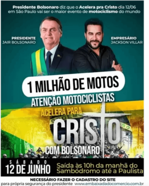 Parte das conversas realizadas em chats do Telegram entre os dias 3 e 23 de outubro foi gravada por uma fonte que pediu para não ser identificada. Nas gravações analisadas pela Agência Pública, destaca-se Jackson Villar da Silva, evangélico que se intitula comerciante, radialista, conservador, presidente do “Acelera Para Cristo” e organizador da motociata com o presidente Jair Bolsonaro em junho de 2021, quando reuniu motociclistas em um percurso de 130 km que partiu de São Paulo até Americana, no interior.