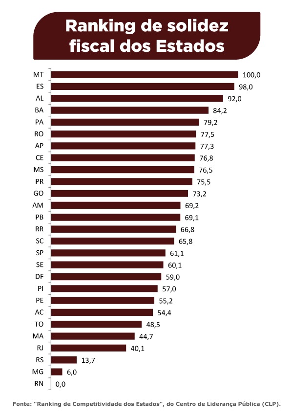 MANAUS – O Mato Grosso ocupa o 1º lugar no ranking que mede a solidez fiscal dos Estados brasileiros, e a 5ª posição quando o assunto é competitividade, segundo o relatório “Ranking de Competitividade dos Estados“, do Centro de Liderança Pública (CLP), de 2022. Integrante da Amazônia Legal, MT é o Estado da região com melhor posição.