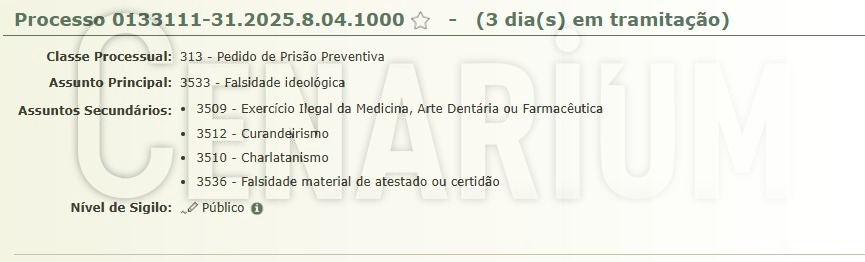 A CENARIUM apurou que Sophia Almeida é investigada por cinco crimes previstos no Código Penal brasileiro: falsidade ideológica; exercício ilegal da Medicina, arte dentária ou farmacêutica; curandeirismo; charlatanismo; e falsidade material de atestado ou certidão. Especialistas apontam que, se os crimes forem considerado praticados em concurso material, as penas são somadas podem chegar a 12 anos de prisão.