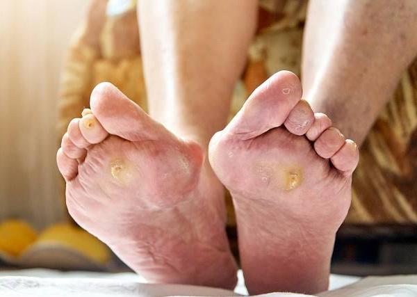 Os doentes podem possuir deformidades, calos, fissuras e feridas, pele seca e quebradiça. É frequente o doente diabético apresentar feridas sem dor, porque não possui sensibilidade.