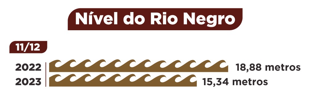 Mesmo com cheia, Rio Negro está três metros abaixo do mesmo período de 2022