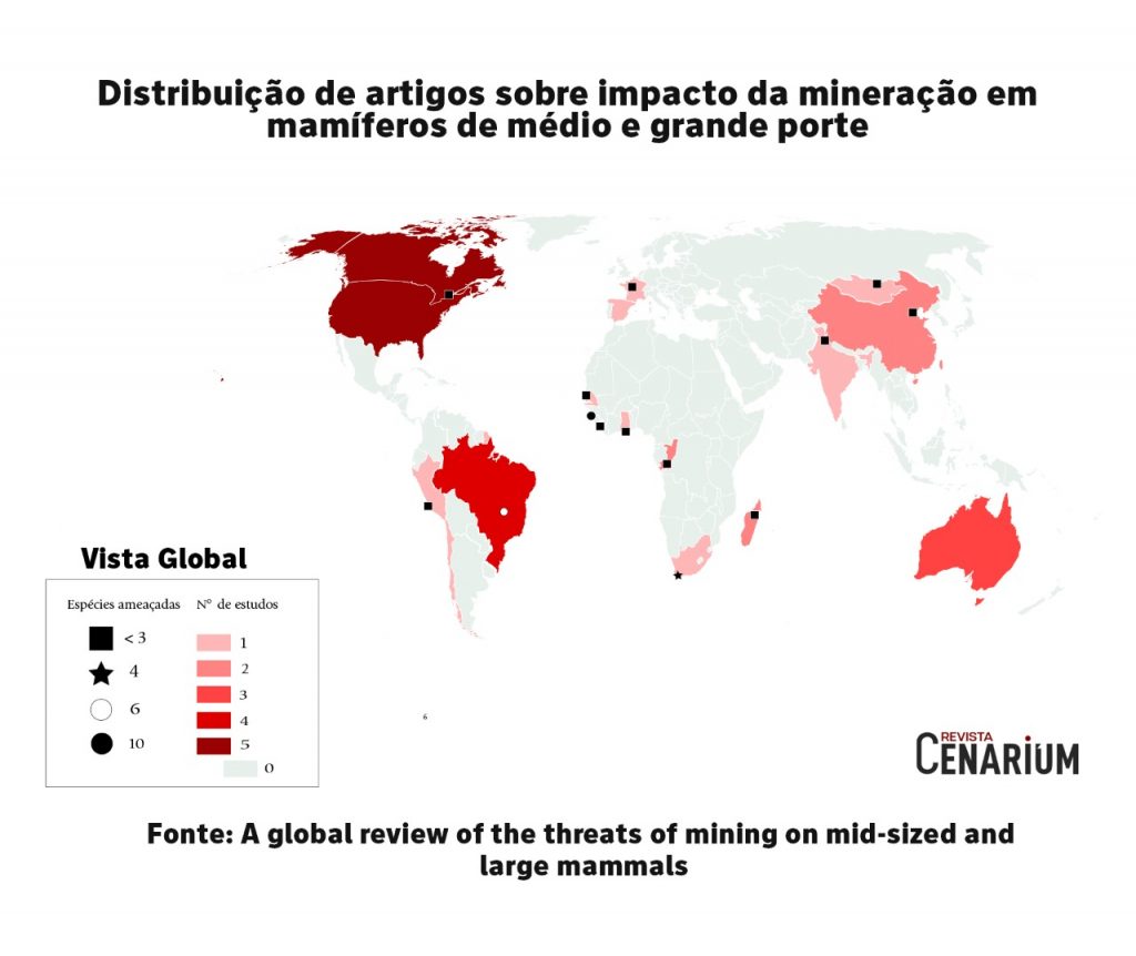 A pesquisa concluiu ainda que os países mais impactados pela mineração são também os que mais produziram conhecimento científico sobre esta relação. “Brasil, Serra Leoa e África do Sul estão entre os países que têm forte participação na mineração mundial, mas cada um destes originou menos de 3 artigos científicos avaliando o impacto da mineração sobre mamíferos de médio e grande porte”, disse ele.